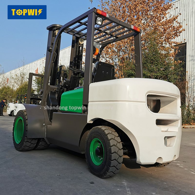 5 Tons Diesel Forklift Truck | Optional Configuration | Cab with fan,Heater in the cab, Dual front wheel,Solid tires, High-grade seat, Tilting and lifting cylinder sleeve, Dual air filter, Oil type air filter,Fire extinguisher bottle, Fire cover, 2-stage mast with full-free lift,Special mast, 3-stage mast with full-free lift,Lengthen fork,Special fork for stone factory,Widen fork arm carrier. |
