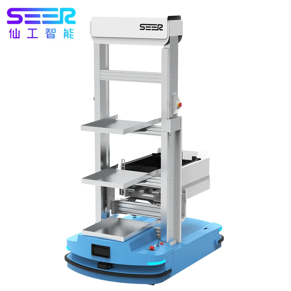 SRC-powered Laser SLAM Small Stacker Automatic Forklift , is equipped with a built-in SRC Series Controller developed by SEER. It can deploy easily without reflectors by adopting Laser SLAM navigation, pick up accurately by pallet identification sensor, deploy easily without reflectors by adopting L......