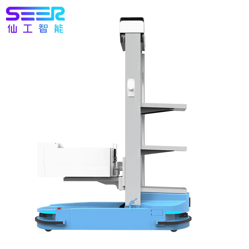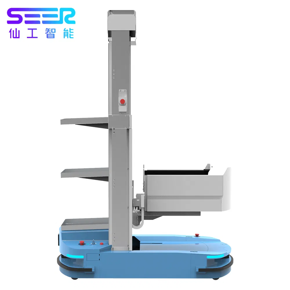 SRC-powered Laser SLAM Small Stacker Automatic Forklift , is equipped with a built-in SRC Series Controller developed by SEER. It can deploy easily without reflectors by adopting Laser SLAM navigation, pick up accurately by pallet identification sensor, deploy easily without reflectors by adopting Laser SLAM navigation, work through narrow aisle with slim body and small gyration radius and ensure 3D safety protection by various sensors such as 3D obstacle avoidance laser and safety bumper. This product is the preferred transfer robotic for goods moving, stacking and palletizing in the factory.