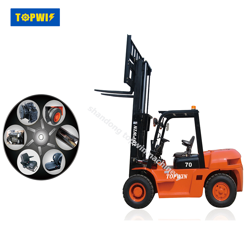 7-10 Tons Diesel Forklift Truck | Optional Configuration | Cab with fan,Heater in the cab,Solid tires,High-grade seat, Tilting and lifting cylinder sleeve,Dual air filter, Oil type air filter, Fire extinguisher bottle,Fire cover,EUR II UK PERKINS 1104D-44TA engine,JAPAN Isuzu 6BG1-02 engine, Special mast,3-stage mast with full-free lift,Lengthen fork. |