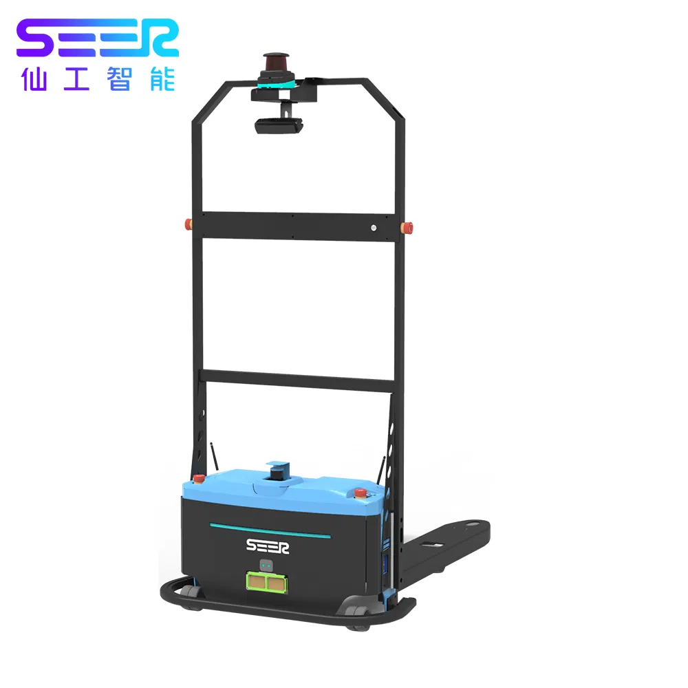 SRC-powered Laser SLAM Small Stacker Automatic Forklift , is equipped with a built-in SRC Series Controller developed by SEER. It can deploy easily without reflectors by adopting Laser SLAM navigation, pick up accurately by pallet identification sensor, deploy easily without reflectors by adopting Laser SLAM navigation, work through narrow aisle with slim body and small gyration radius and ensure 3D safety protection by various sensors such as 3D obstacle avoidance laser and safety bumper. This product is the preferred transfer robotic for goods moving, stacking and palletizing in the factory.