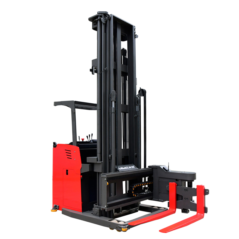 2. Min AST 1600mm, Max.lift height 10000mm, When work at narrow aisle ,no turn direction, only use fork to stack and pick two sides goods,so improves more storages;