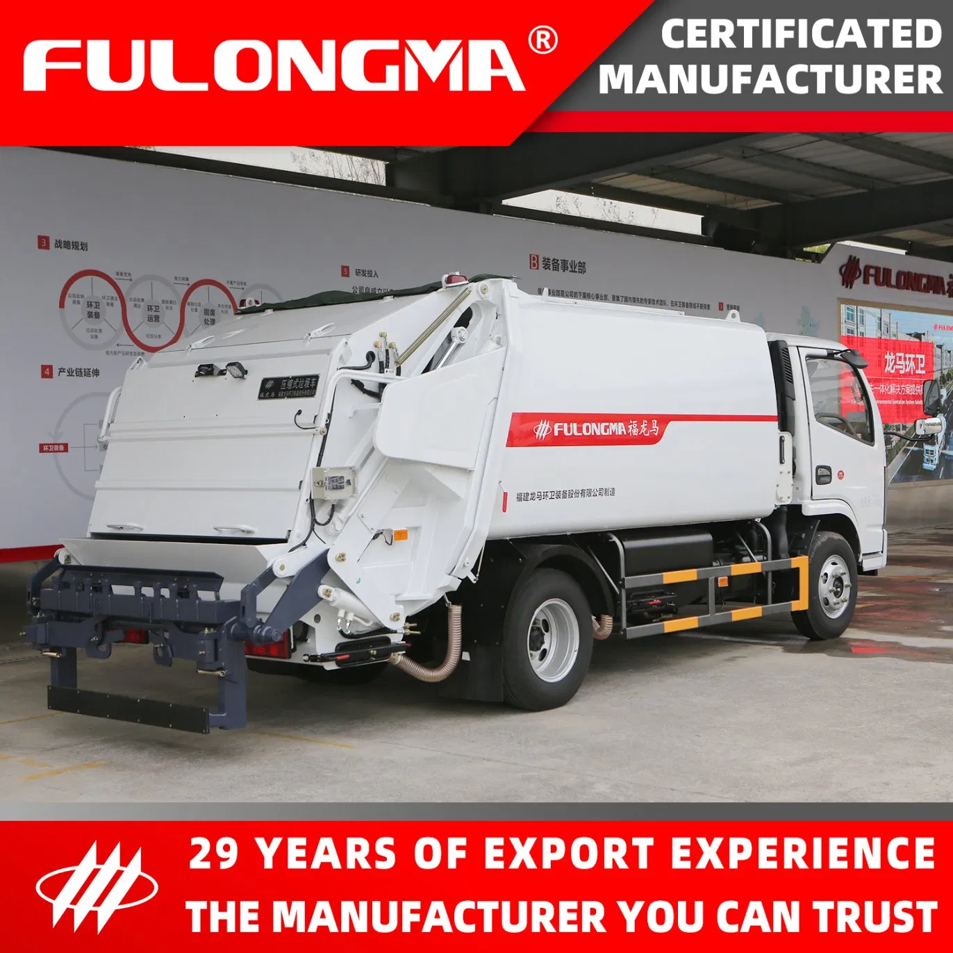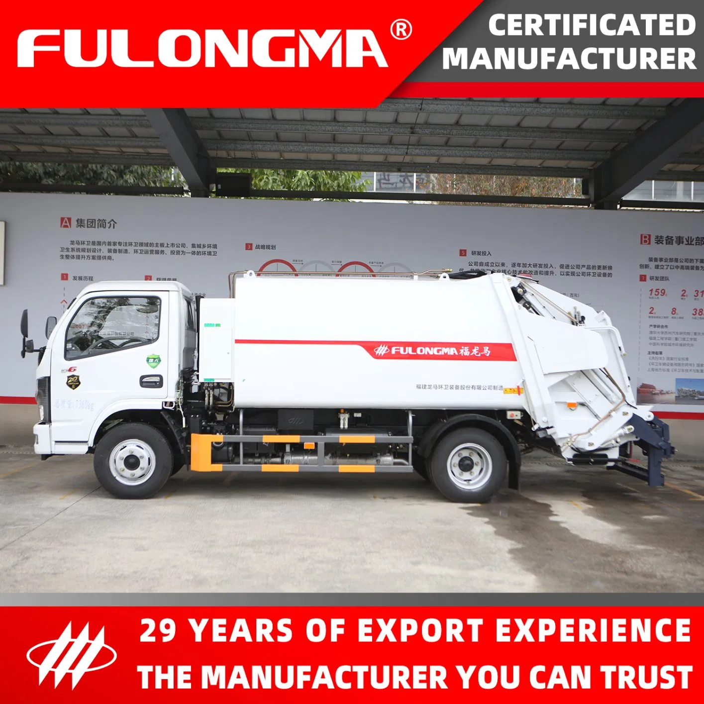 Fujian Longma Environmental Sanitation Equipment Co., LTD. (stock code 603686) is a comprehensive environmental sanitation solution provider integrating urban and rural environmental sanitation system planning and design, research and development, manufacturing, and sales of sanitation equipment, sanitation operation and investment. FULONGMA has a post-doctoral research station and a provincial environmental engineering research center. It is a key high-tech enterprise in the China Torch Program, a prime demonstration of "service manufacturing" within the Ministry of Industry and Information Technology, and the directorial unit of the environmental sanitation operation management committee of China Urban Environmental Health Association. It is the first main-board listed company focusing on the field of sanitation in China. Its shares were included in the "Made in China 2025" theme and was the sample stock of the SSE 380 index. It won the award for the most valuable growth of Chinese listed companies and ranked within the top 100 most-valuable main-board listed companies in China.