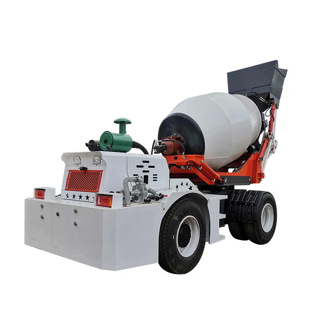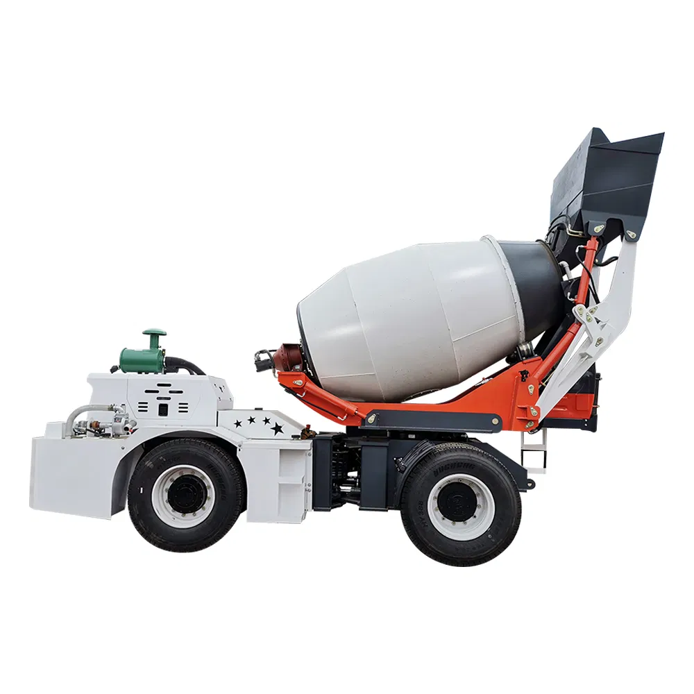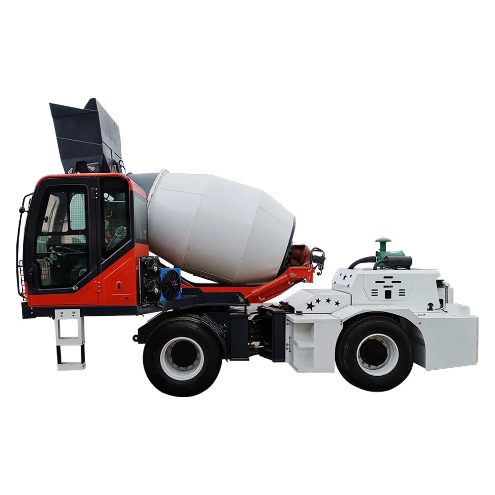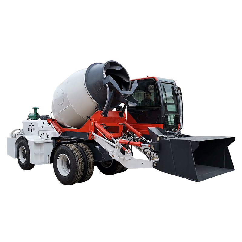 Self Loading Concrete Mixer is a kind of multifunctional machinery which combines the transit mixer, concrete mixer and wheel loader together. It can automatically load, measure, mix and discharge concrete mixture. The automatic loading mixer truck can load concrete materials such as stones, sand, cement, and water into the mixing tank by itself. It can intelligently and accurately calculation, precise control of water intake and feed volume. The mixing tank can be rotated 180 ° or 290 ° or 360 °, making the discharge more accurate and convenient.