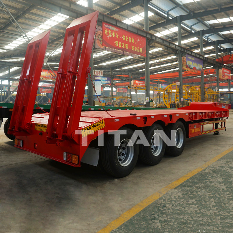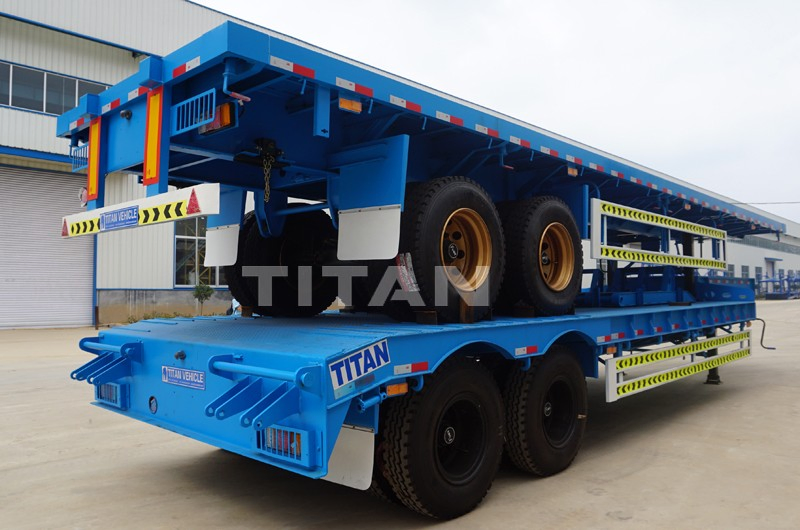 Titan produces the high quality lowbed semi trailer for carrying 40ft container, 20ft container and bulk cargo. the lowbed semi trailer can carry loads 40 ton machnies and cargos. The lowbed semi trailer also called tri-axle flatbed trailer. Titan faltbed trailer are noted for their highly robust structure steel, we can provide difference configurations of our flat bed semi trailer to meet your transportation requirement.