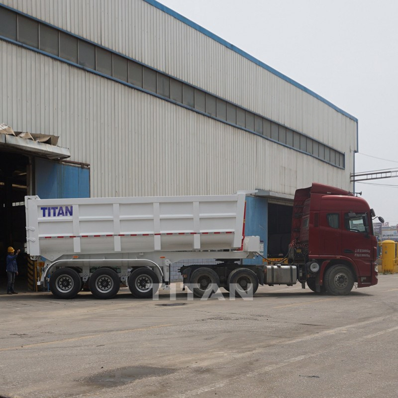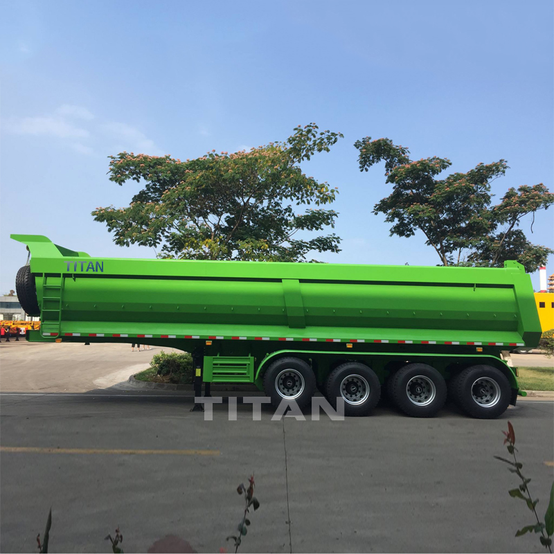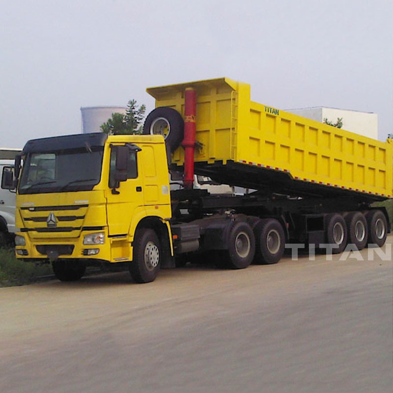 TITAN produces side dump semi trailer is ideal equipment to transport of for carrying sand crush stone rock and salt material.TITAN 12 wheel tipper trailer are equipped with cylinder, which is more reliable and more safety, all key parts of dump trailer are from famous brands boty at home and aboard.We can supply 2 axles, 3 axles, 4 axles tipper semi trailer, which loading capacity from 40 ton ton 80 ton for customer specific requirements.Because of Reliability, durability and the low maintenance of TITAN 12 wheel tipper semi trailer have been appreciated around the world.