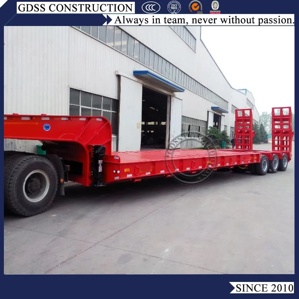 1. SpecificationsModelGC9320TDPMain sizeOverall length13000mmOverall width3000mmOverall height1750mmLoading capacity80T.ChassisMain beamMaterial of high strength steel Q345B.Height 500mm.Top/middle/bottom flange:20/18/20mm.Welded by automatic submerged-processes.Main cross beamMaterial is high stren......